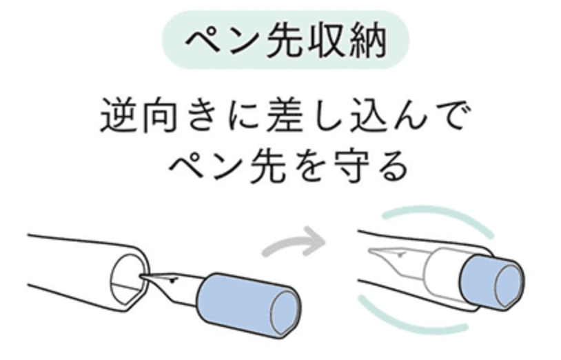 Barril con punta intercambiable que se voltea para taparlo y proteger la plumilla.