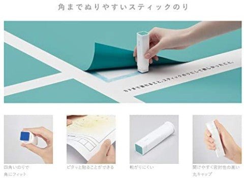 Este pegamento en barra está diseñado cuidadosamente para que pegar fotos, decoraciones y más sea más fácil que nunca. Cuenta con un adhesivo fuerte y un práctico diseño cuadrado. Su forma se alinea perfectamente con los bordes del papel y, además, evita que el pegamento ruede por el escritorio.