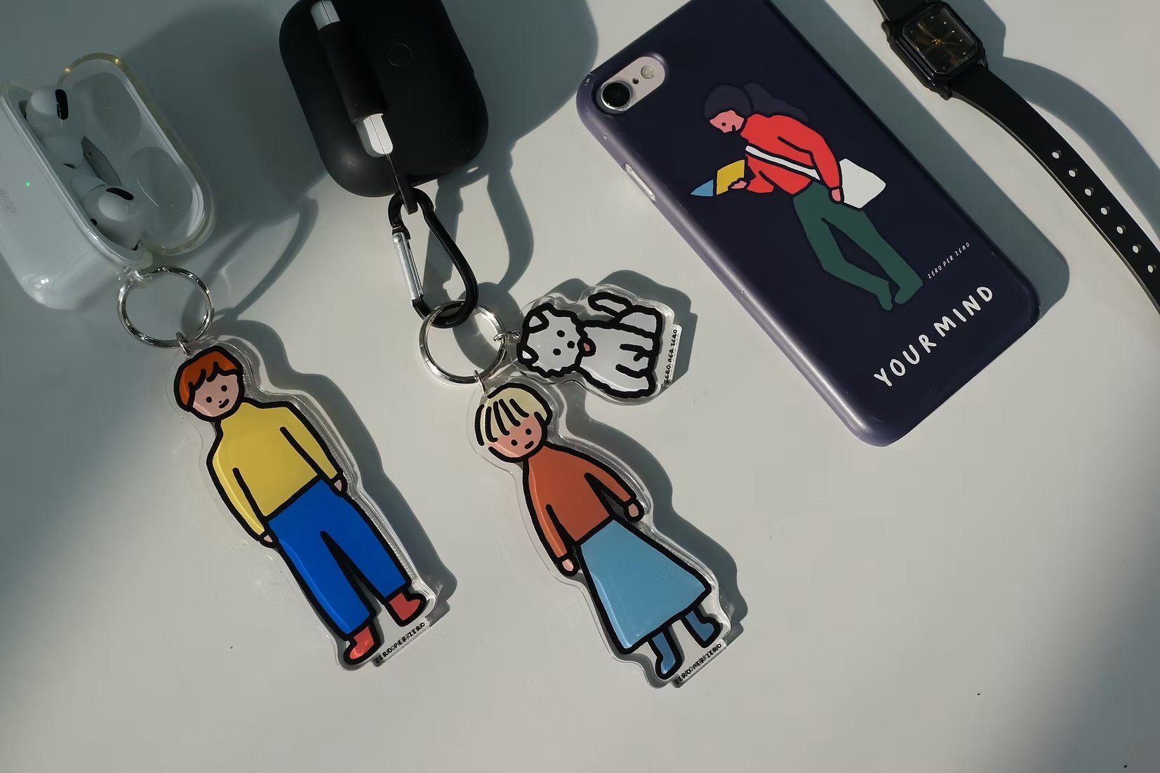 Llavero de acrílico con ilustración. Remover la película transparente que lo cubre.