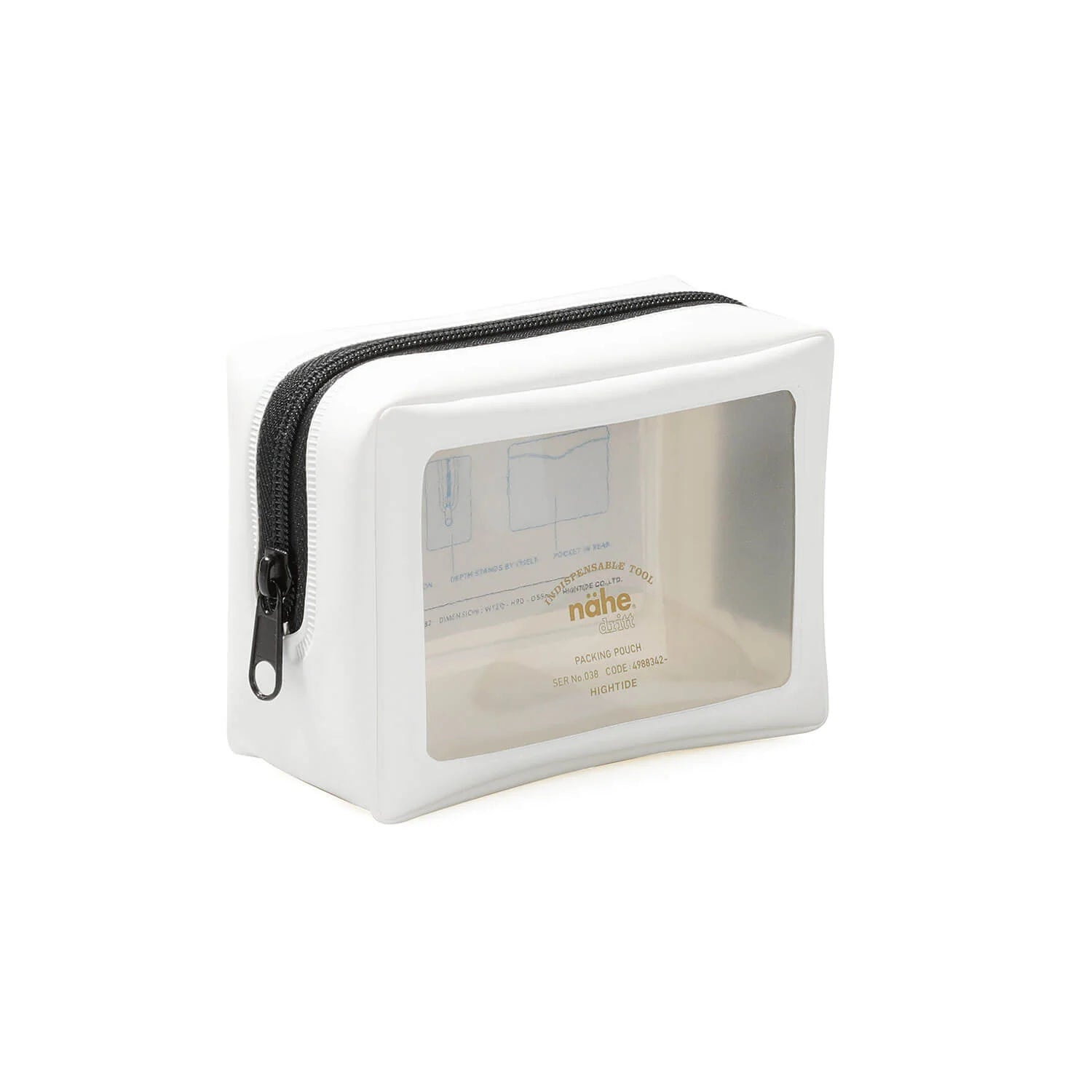 Una bolsa con cremallera hecha de PVC con un frente transparente de Hightide. Viene con un bolsillo ranurado en el interior y en la parte posterior.