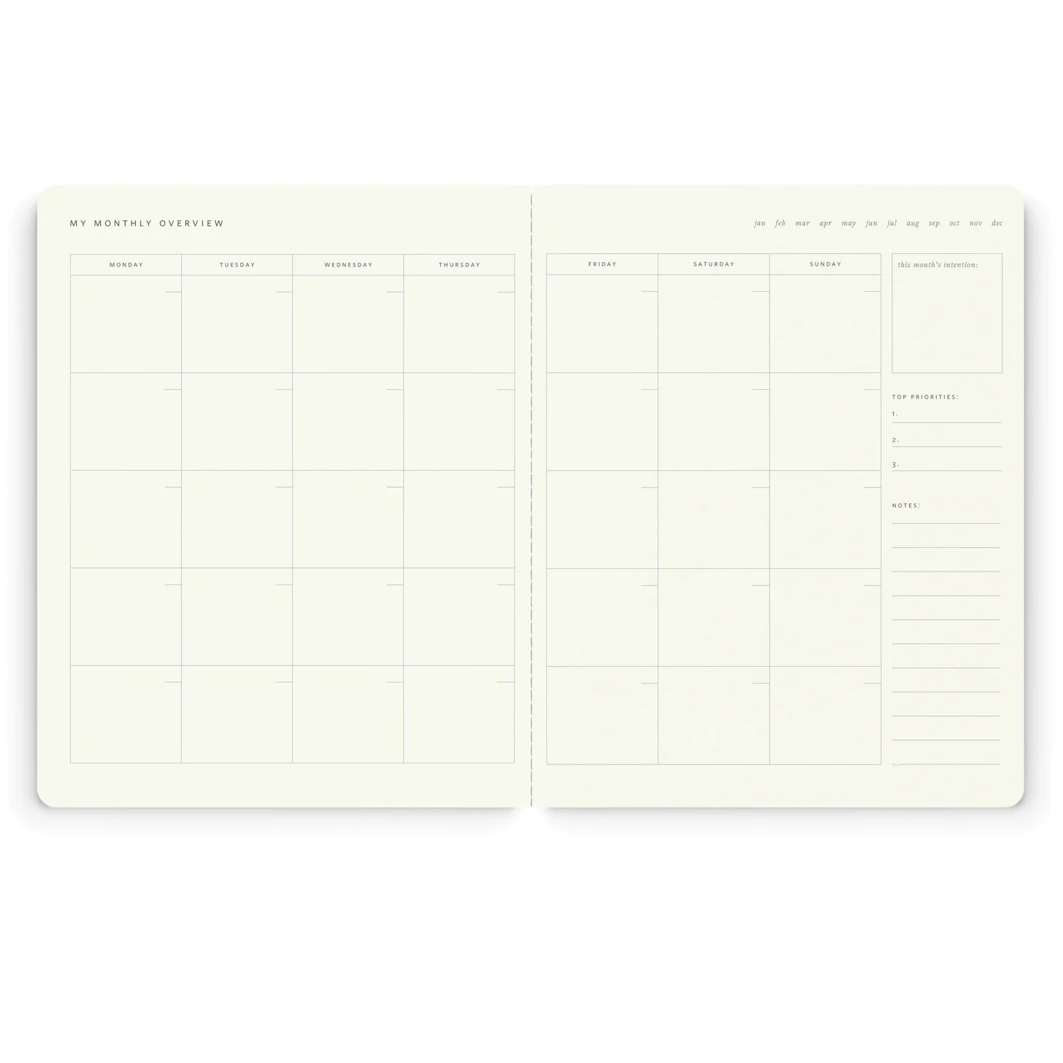 Sin páginas desperdiciadas, sin presión. Solo la flexibilidad para adaptar cada mes a tu ritmo.