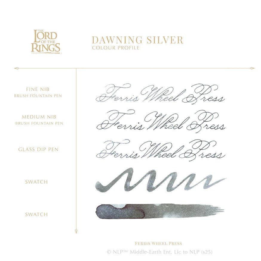 Producto con licencia de Warner Bros. Discovery — Una colección de tintas para pluma fuente exquisitamente elaborada, inspirada en los vastos paisajes y las legendarias batallas de la Tierra Media. Desde el verde intenso Verdant Voyage, que evoca las colinas ondulantes de la Comarca, hasta el sobrio Dawning Silver, que captura los cielos tormentosos sobre Helm’s Deep™, y el ardiente Shadows of Mordor™, reflejo de las profundidades incandescentes de Mount Doom™. Estas tintas con shimmer están diseñadas para dar vida a tu escritura con profundidad y brillo. ¡Descúbrelas y colecciona las tres!