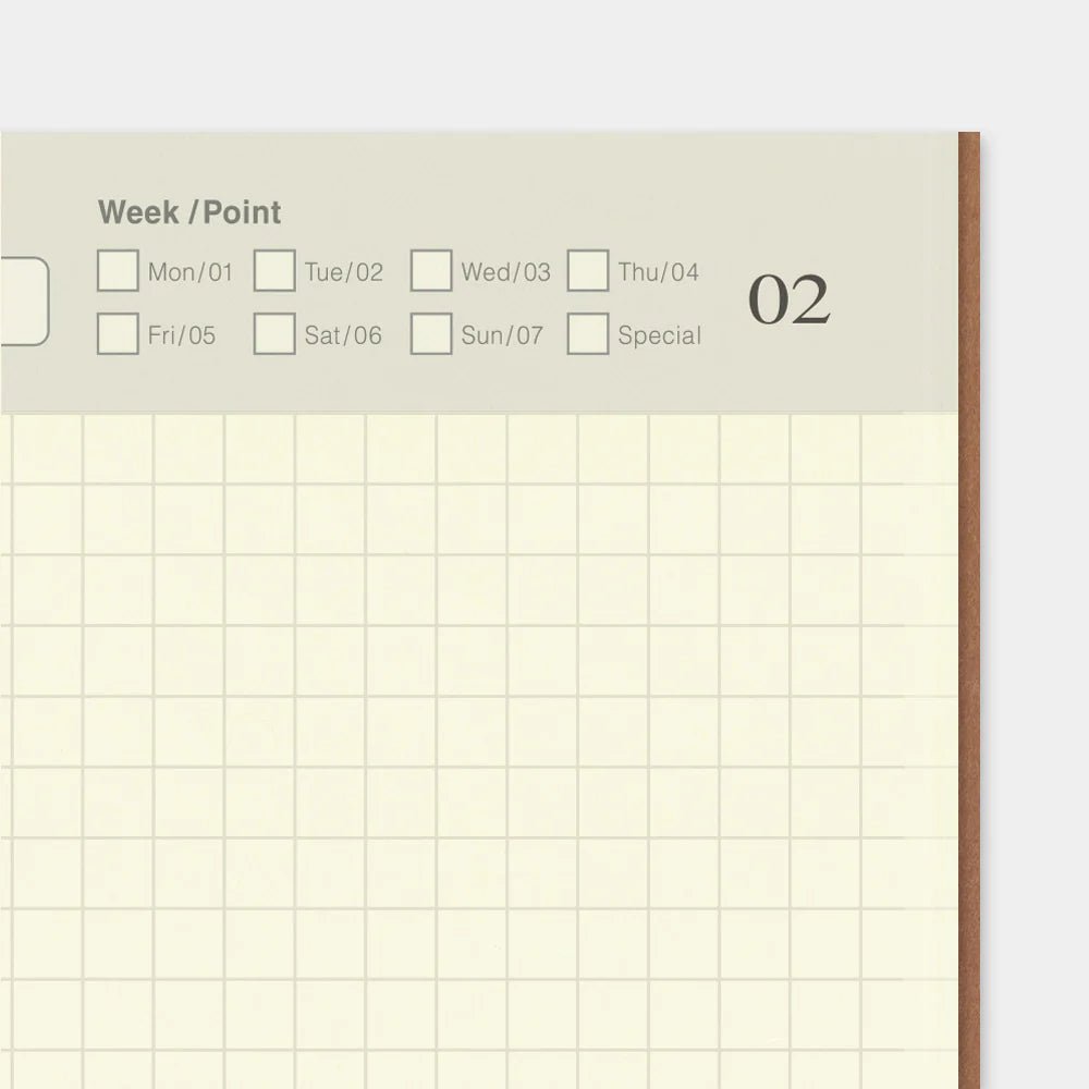 Las páginas están cuadriculadas, lo que facilita escribir, dibujar y pegar elementos que vayas recopilando. También puedes usarlo como una lista, por ejemplo, para anotar los libros que lees o las tiendas que visitas.