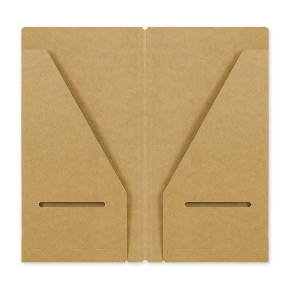 Este folder está diseñado para colocarse dentro de tu refill de TRAVELER’S notebook. Está fabricado con papel Kraft, un material especial que envejece con el uso, desarrollando una textura única al igual que la cubierta de cuero de tu TRAVELER’S notebook.